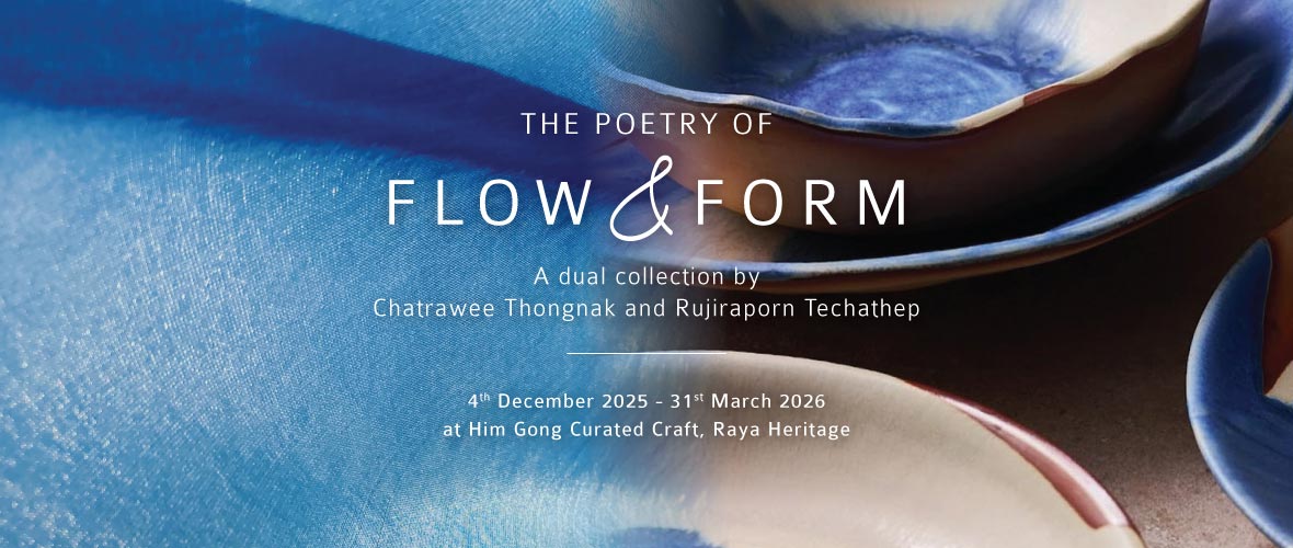 Together, the works of Rawee and Pui transform Him Gong: Curated Craft into a serene passage: silk suspended like flowing water in motion above, clay grounded like the land below. This dual collection invites visitors to pause, observe, and reconnect with the elemental forces – movement and stillness, permanence and impermanence – that define northern life and craft.