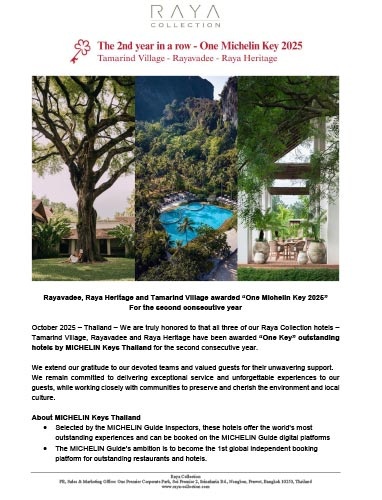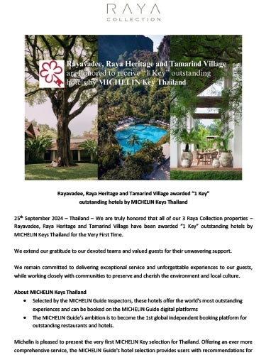 Raya Collection 3 hotels awarded “One Michelin Key 2025” for the second consecutive year