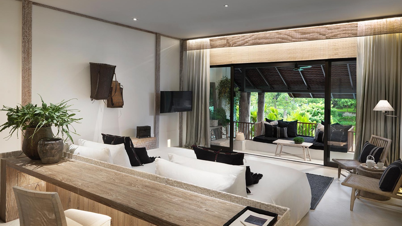 Rin Terrace套房位于酒店二层,客房以白色及乳白为主色调,以黑色点缀。客房大量采用天然材料,打造奢华舒适的住宿体验。每间套房均设有带顶棚的舒适户外露台,可俯瞰酒店葱郁的绿色空间及宁静的湄平河。客房内手工纺织品、竹篮、陶器和木雕等手工装饰品彰显出独特的奢华风韵。融汇了简约、自然之美,同时又体现出泰国北部的独特文化传统。